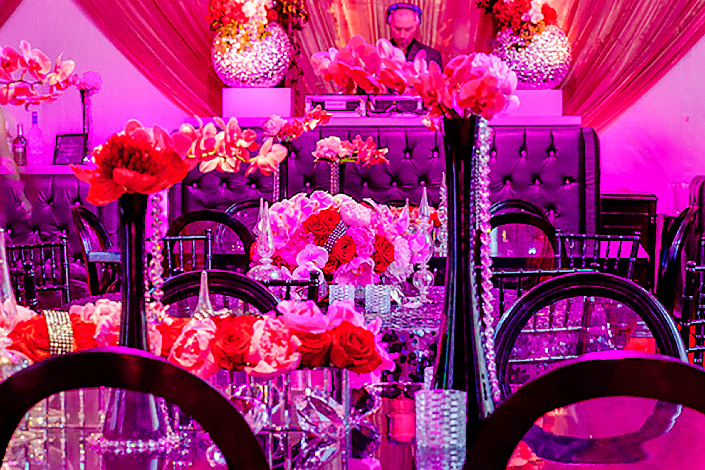 Linda Holliday’s Hot Pink Party to celebrate her 50th birthday at the Mandarin Oriental Boston under a tent.